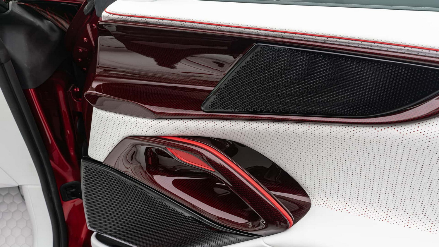 Lak se jmenuje „Vermillion“ a v článku je popsaný jako silná a elegantní metalická červená. A samozřejmě – s kamennou tváří – se tvrdí, že díky němu Pugnator „absolutně splyne s davem“. Jistě. Červené Ferrari, co splyne. To je jak tvrdit, že slon v porcelánu má talent na balet. Mansory k tomu přidává, že kapota a všechny přídavné díly jsou z jednobarevného kovaného karbonu (forged carbon), což má vozu dát „diskrétní dotek vysokého understatementu“. Tenhle „understatement“ je tak vysoký, že ho uvidíte z orbitu. Ale pozor: my si nevymýšlíme, my jen překládáme tu krásnou ironii, kterou článek servíruje jako dezert.