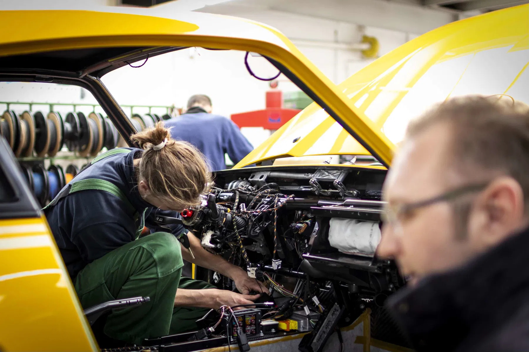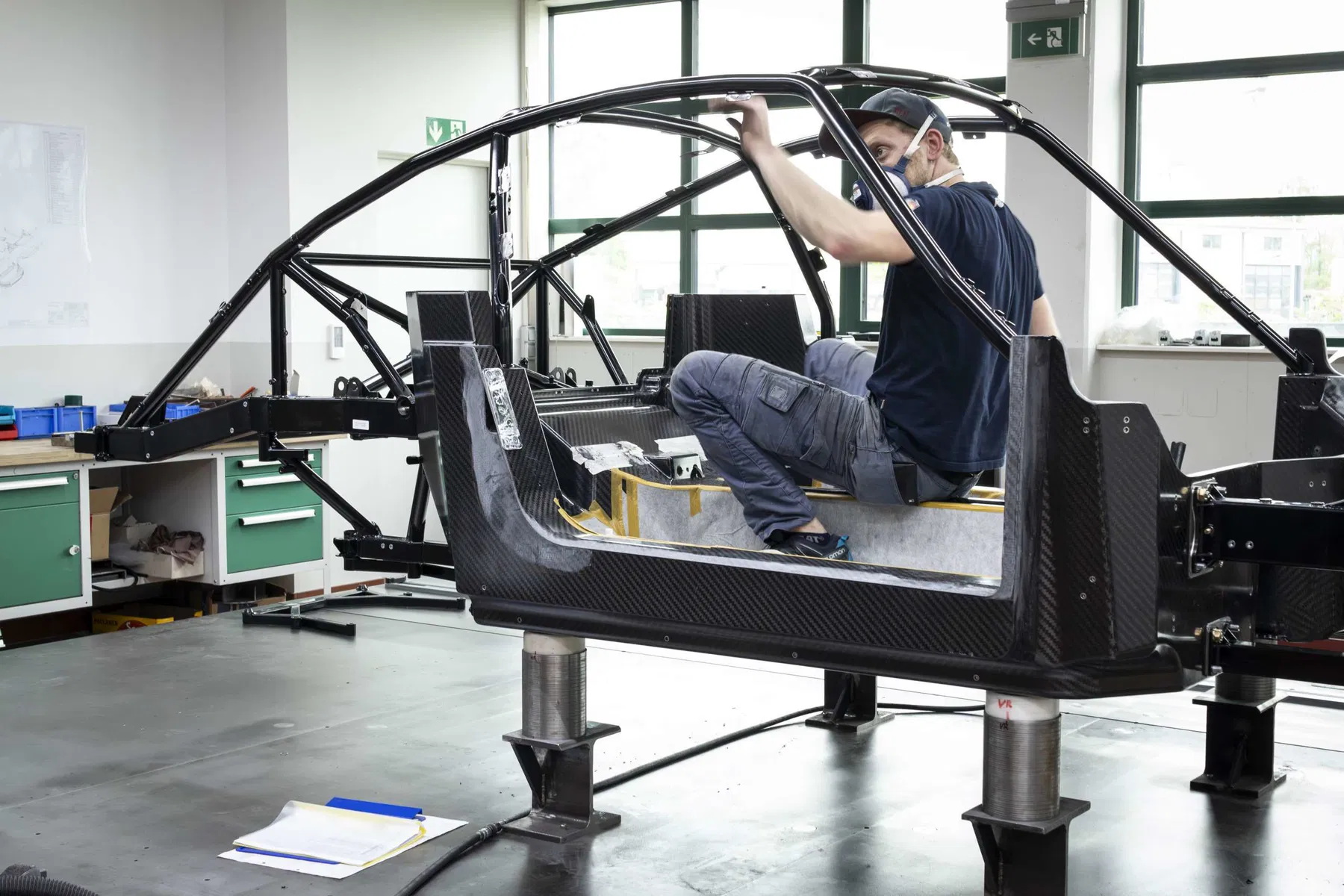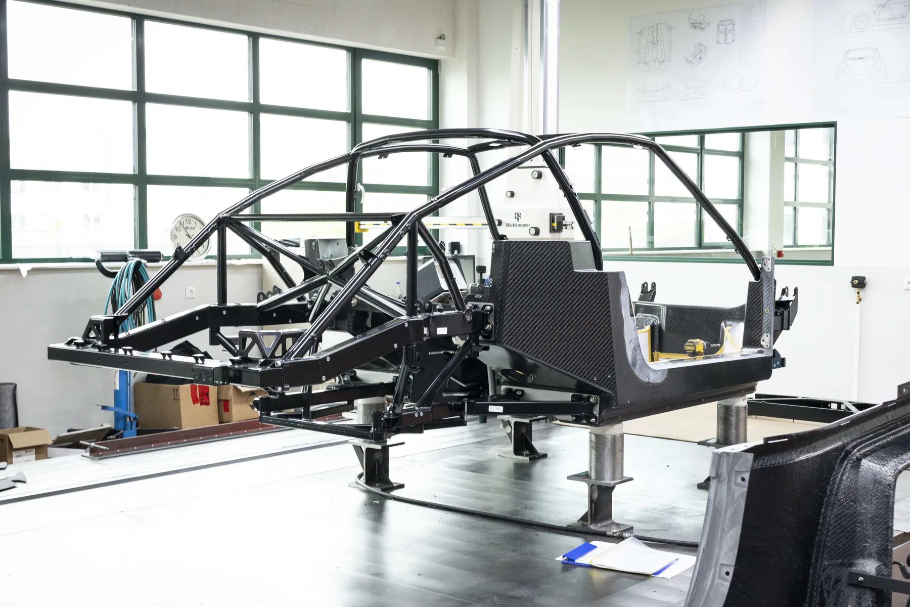 Jedna věc je okamžitě jasná: tady se nehraje na pozlátko, tady je produkt střed vesmíru. A ten dojem pokračuje v dílně. Vývojový inženýr Rafael Riethmüller nás bere přímo do akce: kolem kanceláří vývoje a rovnou do výrobní haly. Všechno má své místo, atmosféra je klidná a soustředěná. Tohle je prostředí, kde „mistři řemesla“ skládají auta, která jsou pro spoustu lidí spíš snem než dopravním prostředkem.